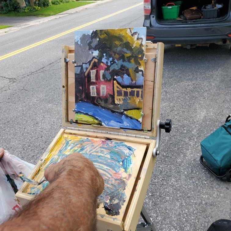So to save time on-site and attempt to get a more immediate impression of a subject, I’m doing smaller 8×10 paintings . I’m already all set-up and have done my first one two days ago. Seems do-able. It took less than 30 minutes – 1/4 of the time, for a 1/4 size canvas (1/4 area that is). I foresee exciting outings for quick studies in the Ottawa area !