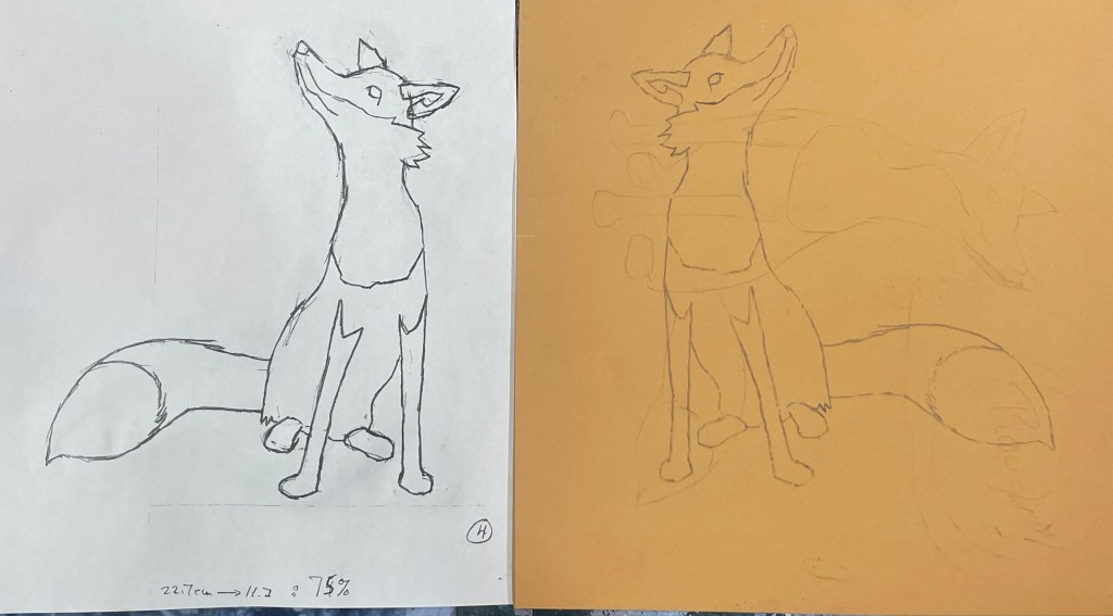 Une folie comme ça…un projet de linogravure, 30 x 45 cm, illustrer la fable ‘Le corbeau et le renard’ de Jean de La Fontaine. Le design est essentiellement complété; je passe maintenant à un essai de gravure sur linoléum, avec le renard. L’objectif est de graver assez grossièrement afin de communiquer beaucoup d’énergie. En noir sur blanc.