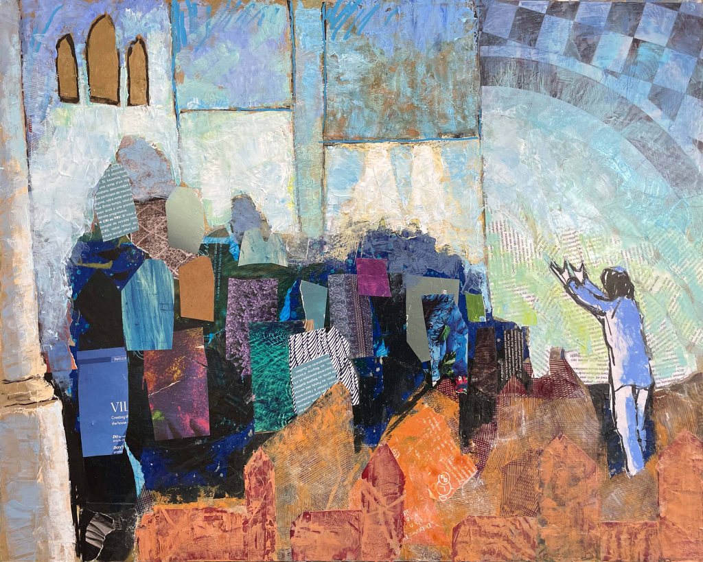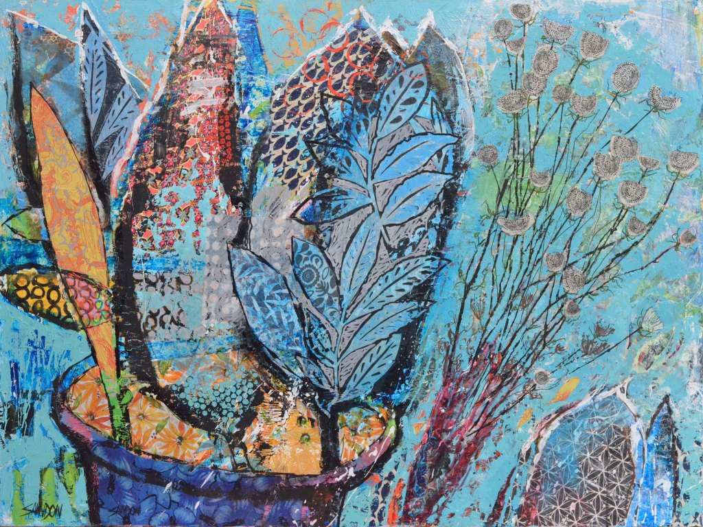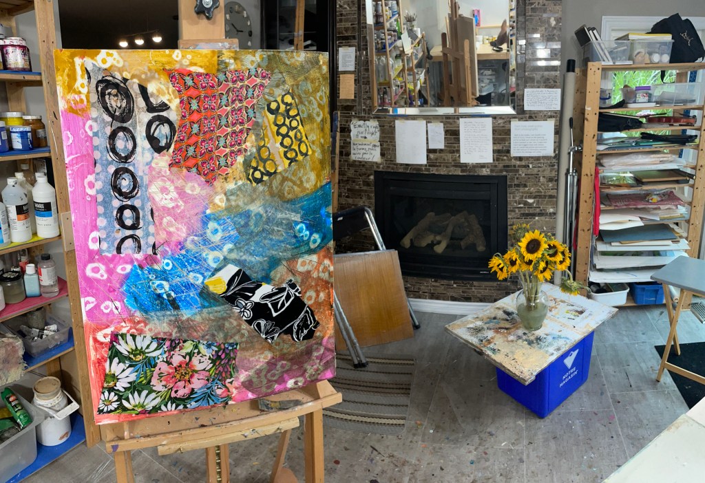 Steps along the way in creating ‘Choeur en couleur’ (22×30 in, mixed media)