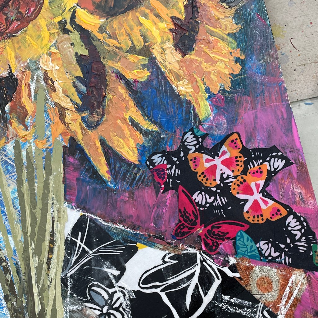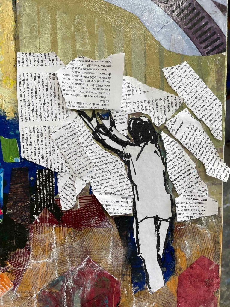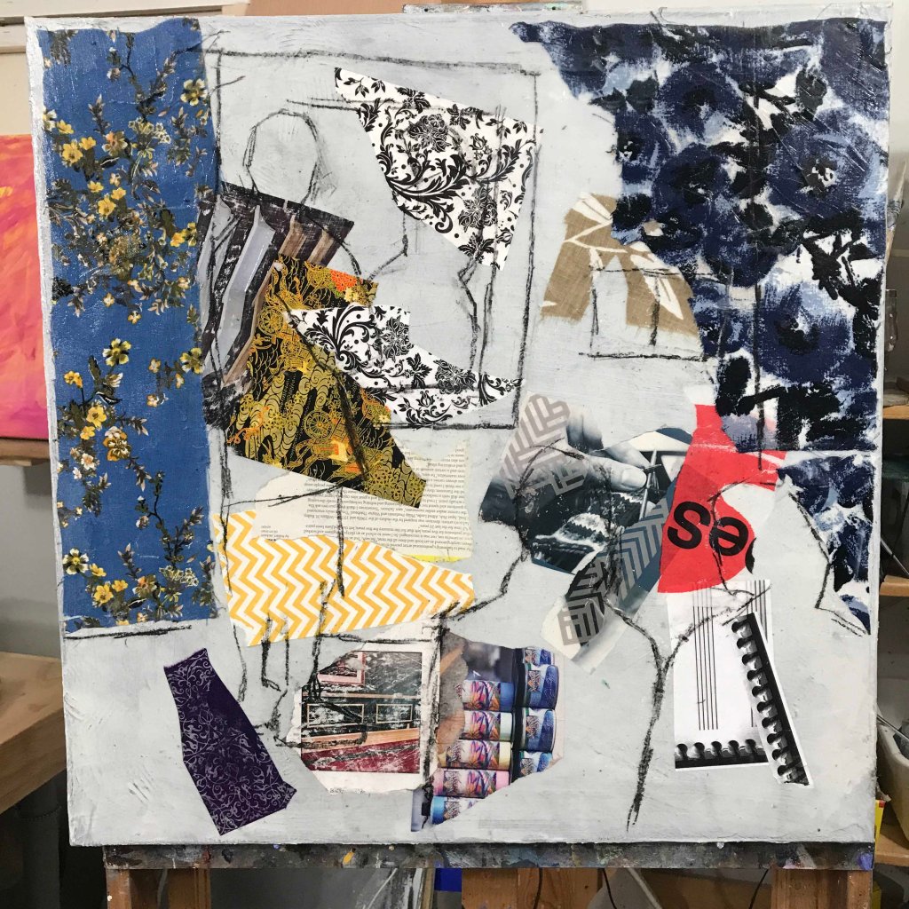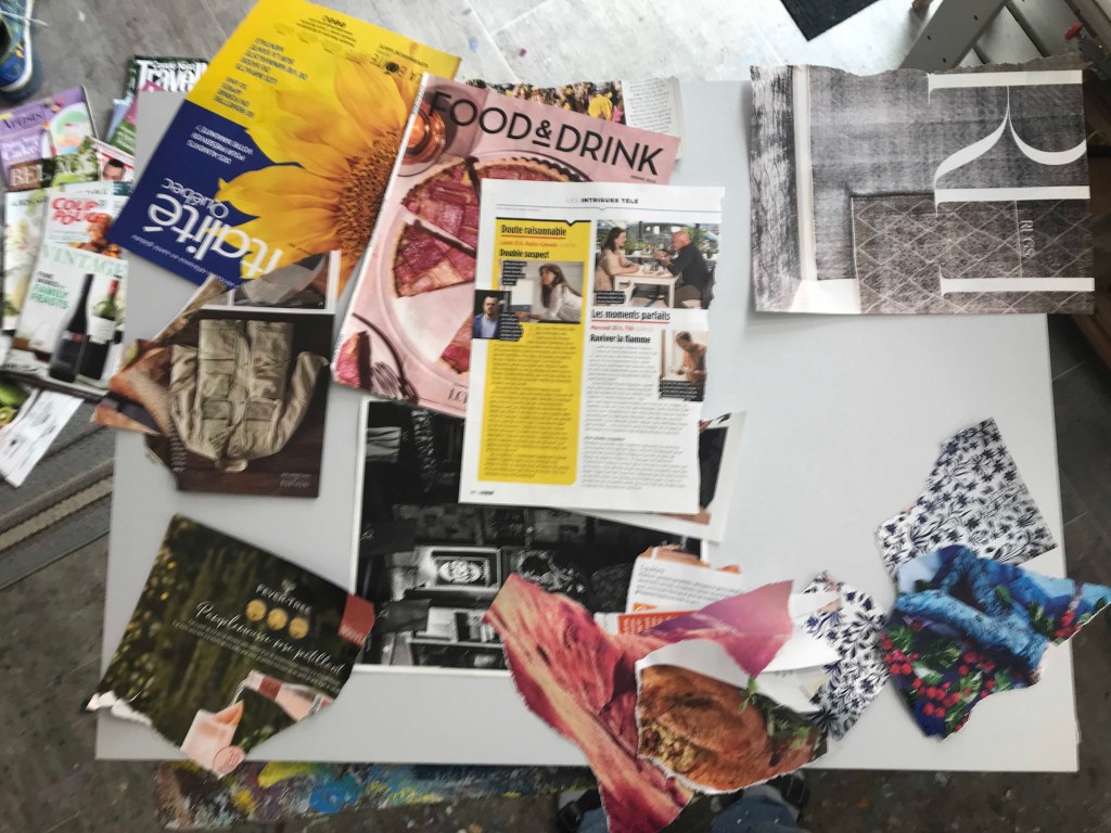 Étapes d’un collage, tableau en cours / Stages in a collage, work in progress