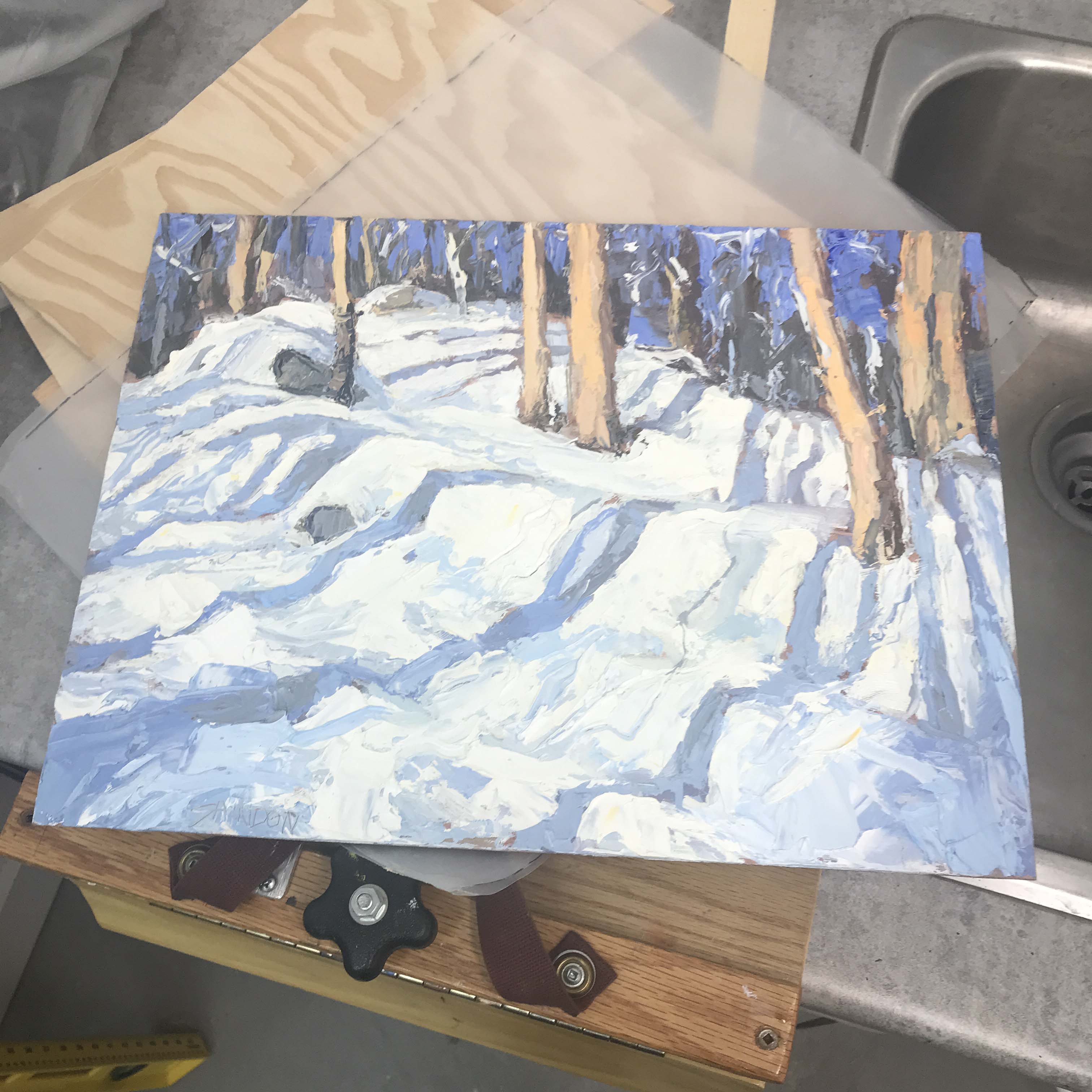 Ian Tamblyn, Canadian singer-songwriter-geographer-explorer-playwright, etc., wrote an album: ‘Walking in the Footsteps: Celebrating the Group of Seven’. It is so good. He obviously did his research and probably spoke to many plein air painters. Anyways, one of his songs in particular, ‘That Boxcar in Algoma’ hits the nail on the head to me…it pretty well feels like that when I’m out painting. Here are the lyrics, but you should find the song and listen to it (Spotify, iTunes, etc):