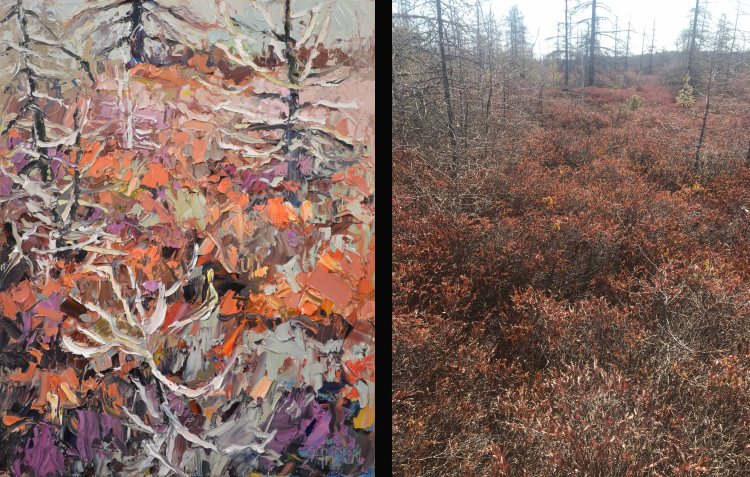 Defective Giclée to Tamarack landscape / Une giclée mal faite conduit à un paysage avec mélèzes