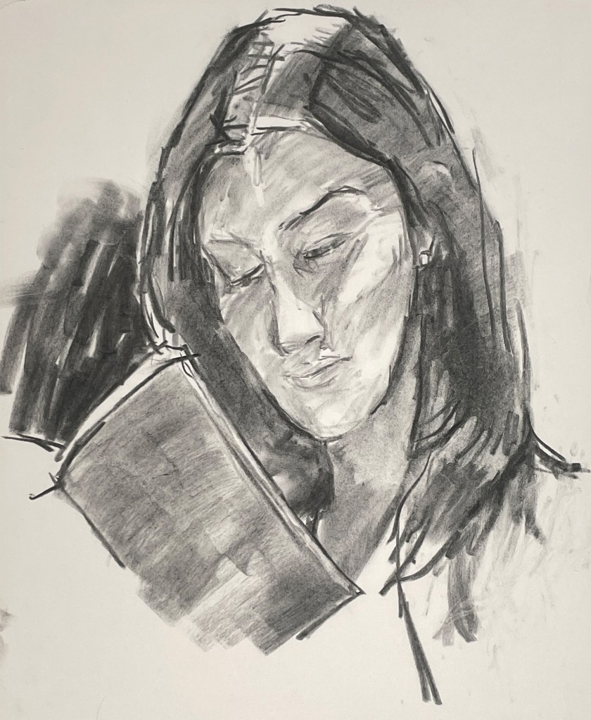 This young man could well have been my own son – I’ve painted many self-portraits in my life, and in painting his I was surprised to find the exact same shapes as my ear, the top of my forehead…
