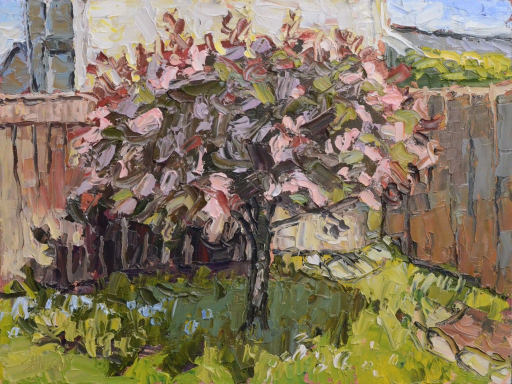Voici deux études en plein air d’un même sujet, récemment peint à l’huile (à gauche) et l’an passé peint à l’acrylique (à droite). Même sujet, même endroit, même temps de l’année, mêmes conditions de lumière. Intéressant; chaque médium offre ses propres avantages.